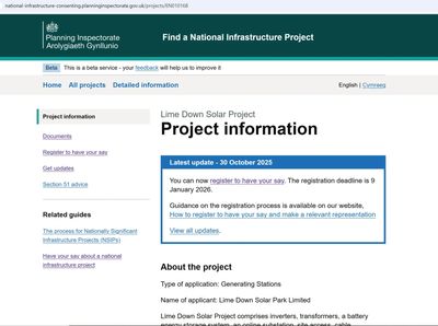 Click on the red button below to go to the Planning Inspectorate (PINS) webpage for the Lime Down project.